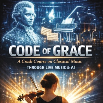 A classical crash course through live music. Step into a vibrant journey through the evolution of classical music, from the elegance of the Baroque to the colours of the modern age. Featuring professional musicians alongside rising young artists from Grace Art Studio, this concert blends live performance with visuals. Designed as the ultimate crash course, the programme reveals the timeless beauty behind the world's most iconic styles, while exploring fresh ways technology can support music education and performance. This is classical music reimagined for curious first-timers and seasoned concertgoers ready to experience the genre in new ways.